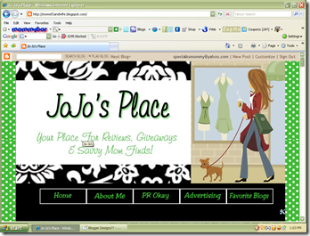 Yesterday I was on the search for a blog designer for a new layout for JoJo's Place (my review/giveaway) blog. I looked high and low, prices included. I couldn’t bare to pay upwards of $125 to get what I wanted.